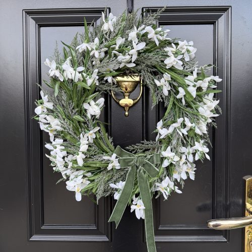 New Artificial Frosted Snowdrop Door Wreath with Plaid Bow