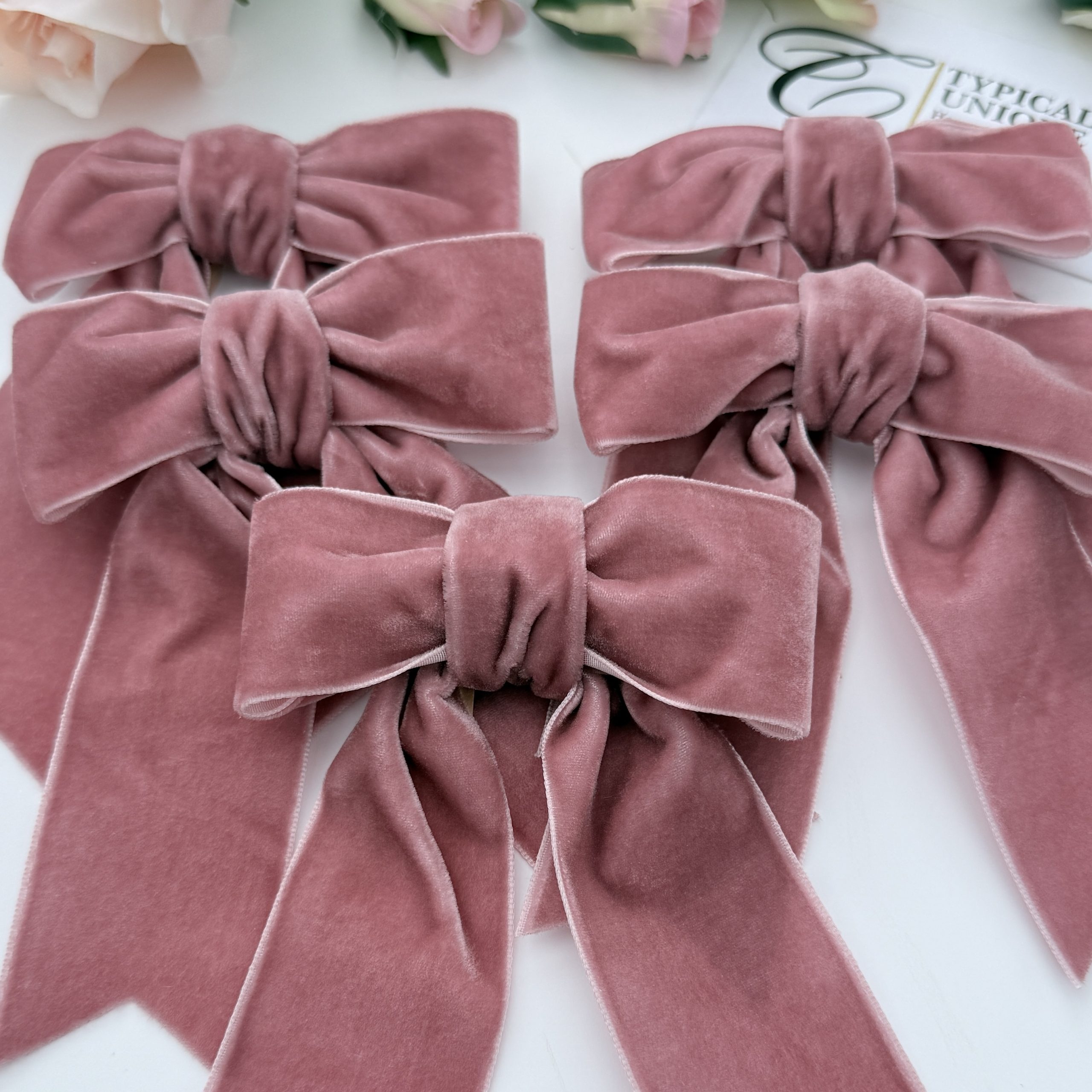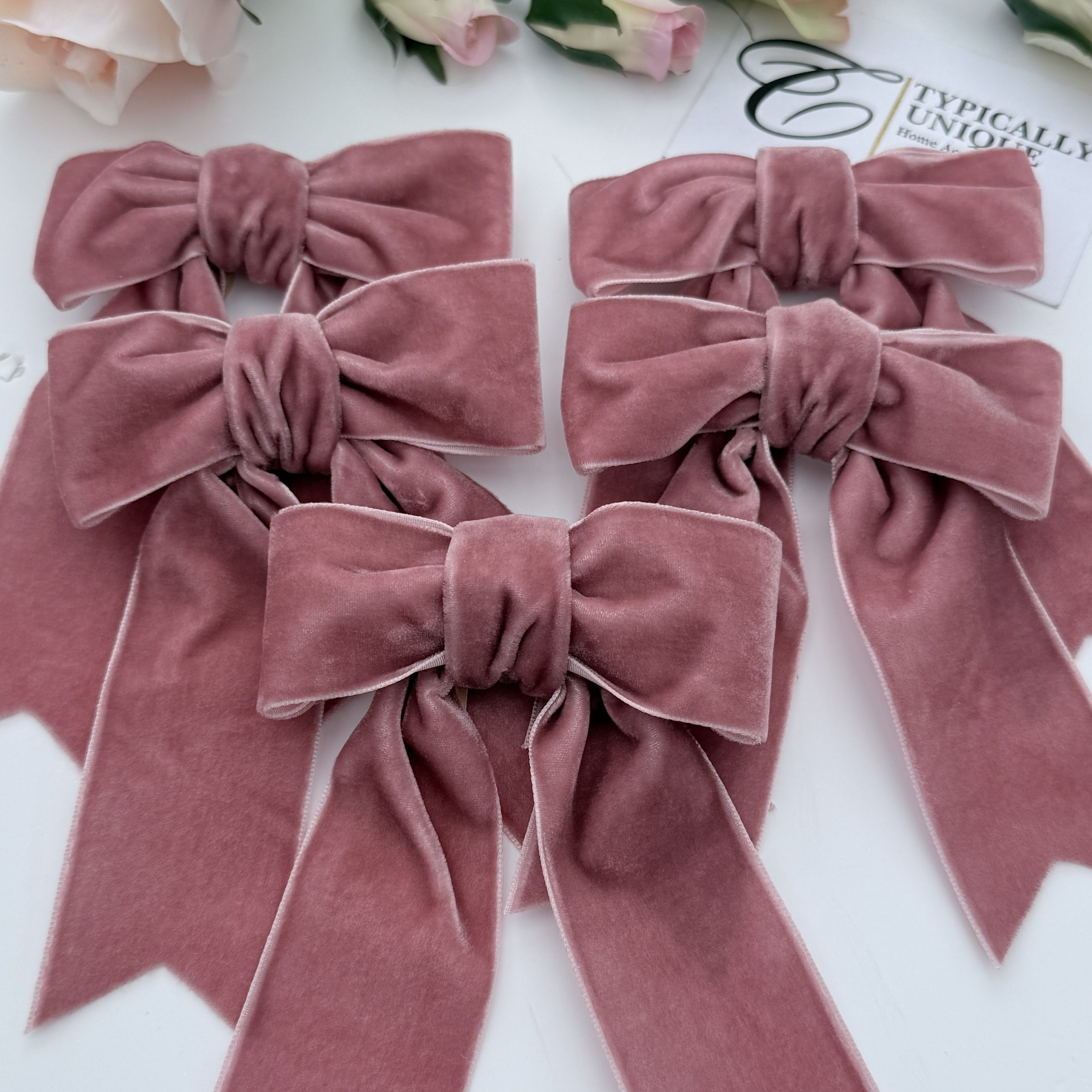5 Pre-tied Velvet Bows ‘Blush Pink’