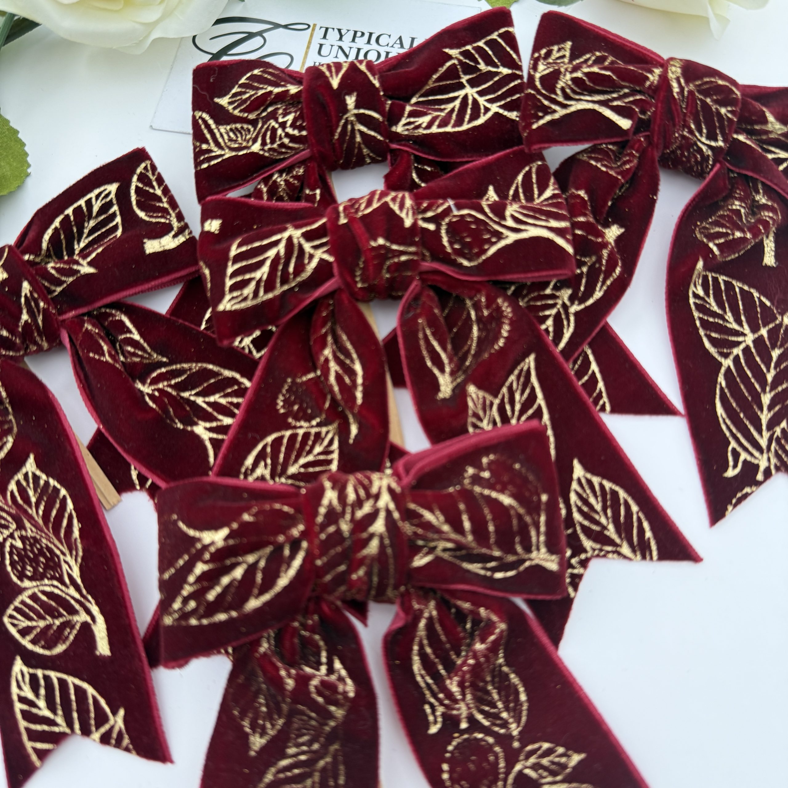 5 Pre-tied Velvet Bows ‘Leaf Red’