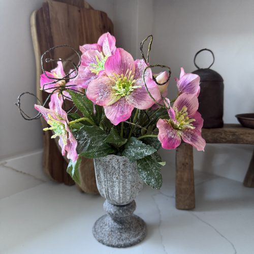 • Artificial Pink Frosted Hellebore Flower Arrangement